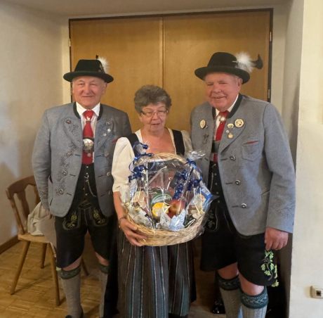 Am Freitag, den 27.06.2025 besuchten der 1.Vorstand Karl Holler mit seiner Frau Rosa Therese Bayrle. Sie gratulierten ihr zum 85. Geburtstag im Namen der Deandl`n und Buam und überreichten ihr ein Präsent. Für ihren weiteren Lebensweg wünschen wir alles Gute vor allen Dingen Gesundheit.