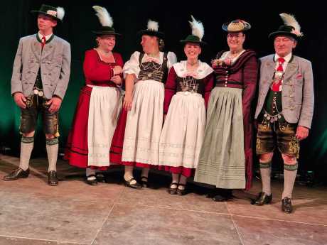 Im Anschluss stellte der 1. Vorplattler Josef Steinbrecher unsere Miesbacher Tracht vor. Viele Dirndl und Buam des Vereins trugen die vielen verschiedenen Varianten unserer Miesbacher Tracht. Vom Vereinsdirndl bis hin zur Halb- und Festtracht wurden alle Details von Schmuck und Kleidungsstücken den Zuschauern näher erklärt. Selbstverständlich durfte auch die Trauertracht und das besonders edle Schalk - und Kirchengwand nicht fehlen.