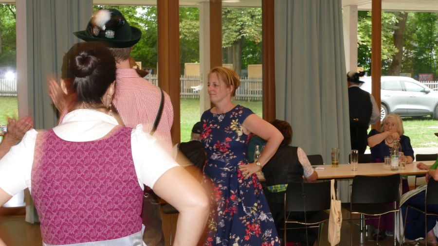 Musikalisch begleitet wurden wir an diesem Nachmittag vom Musiker der Riadastoana Feldmoching, Hans Dornecker. Um einen größeren Umfang an Schuhplattler und Volkstänzen zeigen zu können, wurden unsere aktiven Mitglieder von D‘Almarösler Planegg und Riadastoana Feldmoching unterstützt. Trotz des heißen Wetters konnten wir uns als Verein von unserer besten Seite zeigen und waren sicher eine Bereicherung für die Veranstaltung.