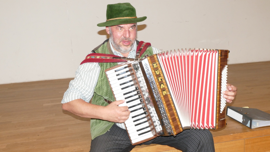Zu den Grillspezialitäten ließen wir uns die von den Deandl’n und Buam gemachten Salate, Antipasti und andere Köstlichkeiten schmecken. Auch das frisch gezapfte Bier, diesmal spendiert von Christian Schöttl, mundete vorzüglich. Musikalische Schmankerl lieferte Hans Dornecker auf der Ziehharmonika. Versüßt wurde der Abend durch zahlreiche selbstgemachte Kuchen.